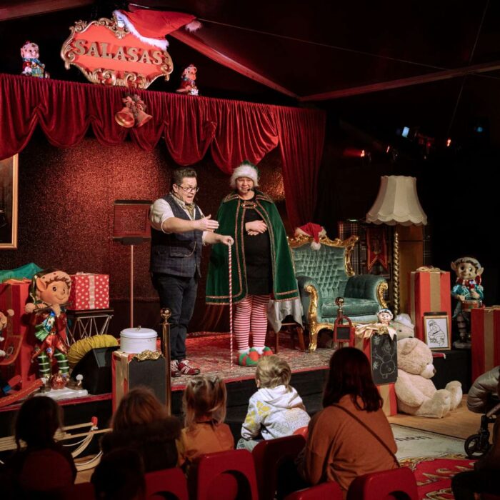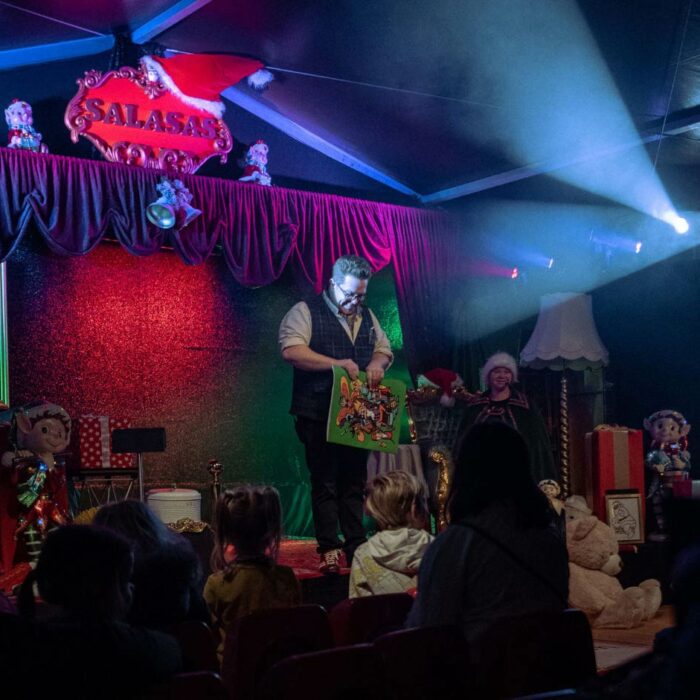 Zauberer Salasas und sein zaubernder Partner Flitzikus bieten eine faszinierende Kombination aus klassischem Puppenspiel und Magie, die das Publikum immer wieder in Staunen versetzt.